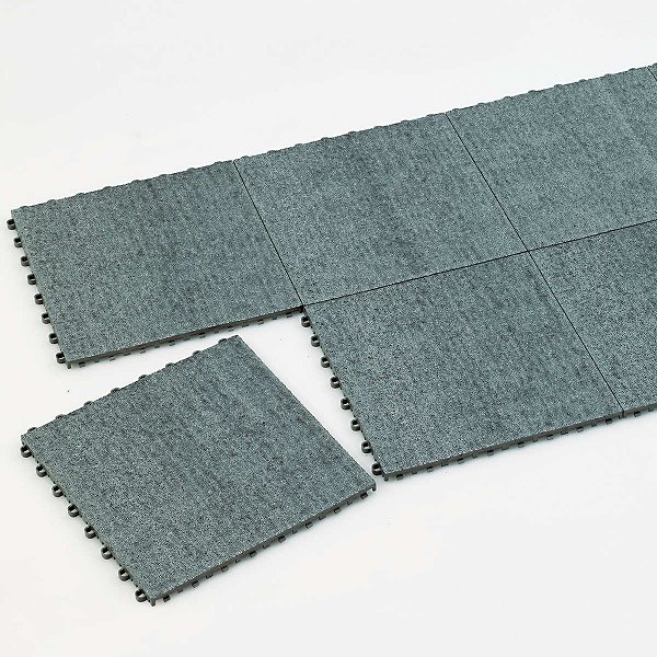 30cm角のジョイント式で、きっちり敷き詰めたり足元だけの必要なサイズやその場に合った形に施工できます。また、すり減ったところだけ部分的に交換できるので、便利で経済的です。