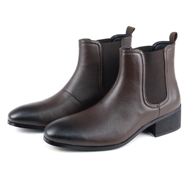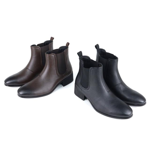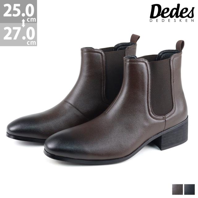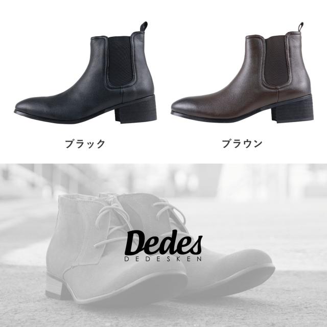 サイドゴアブーツ メンズ 紳士靴 ショートブーツ ショート丈 美脚 脚長 身長アップ 上品 きれいめ 大人 5cmヒール No.6317 25.0cm〜27.0cm 黒 ブラック Dedes デデス