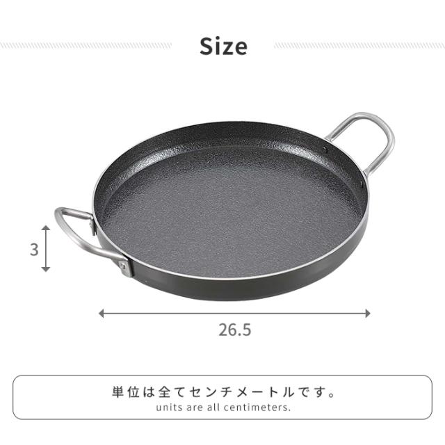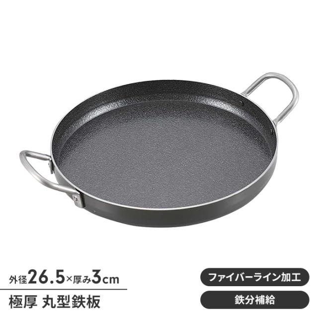 鉄板 BBQ 丸型 縁あり 極厚2mm 鉄製 径26.5 高さ3 フライパン 取手付 キャンプ アウトドア バーベキュー 丈夫 焼きそば パエリア