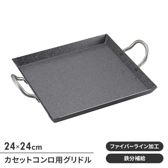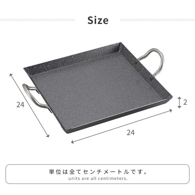 鉄板 BBQ カセットコンロ用 縁あり 浅め 幅24 奥行24 高さ2 正方形 鉄製 取っ手付 キャンプ アウトドア 丈夫 焼きそば パエリア