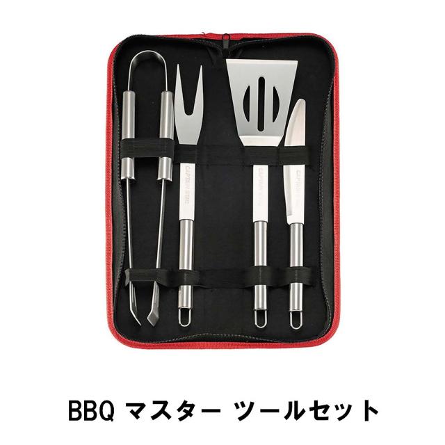 | 本格的なアメリカンスタイルバーベキューに必要なツールをまとめたセットです。 4つのツールとバッグのセット。 持ち運びに便利なバック付きでコンパクトに収納ができます。 |