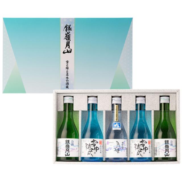 【数量・内容】銀嶺月山 冷酒300ml×2、銀嶺月山雪中熟成(純米吟醸)300ml×2、銀嶺月山 純米吟醸 月山の雪300ml×1