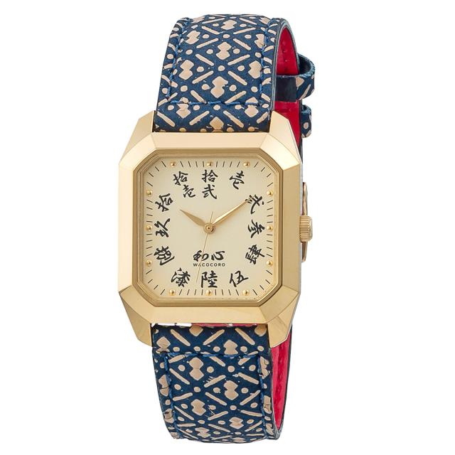 『和心 宇陀印傳-UDAINDEN- 和心 宇陀印傳の瓢箪模様をバンドに採用した日本製腕時計 (大字) WA-002M-O』宇陀印傳をバンドに採用した日本製腕時計です。特徴の一つとなるバンドには奈良の宇陀印傳を使用。メッキには3ミクロンの22金メッキやパラジウムメッキを用いている為、上質な色と輝きになっています。ムーブメントを始め、多くの部品を国内で製造しております。一つ一つ手作りされた部品を国内で組みあげた他にはない腕時計です。防水/日常生活防水、クオーツモデル。【宇陀印傳-UDAINDEN-】天平工人の技によって奈良時代に製作されたのが始まりとされ、印傳唯一の国宝が東大寺(奈良)に残っており、また正倉院の宝物にも印傳の技法を用いた鞍が残されています。武家時代になると「本燻染(ほんくすべぞめ)」という製法が登場し、その丈夫さ美しさから甲冑などの武具にも使用されていました。時代と共に皮革の揉製技術も改良され、近年の宇陀印傳製品は、実用性に気品と優雅さを備えたものとなっております。