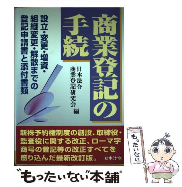 【中古】 商業登記の手続 設立・変更・増資・組織変更・解散までの登記申請書と添付書類 9訂 / 日本法令商業登記研究会 / 日本法令 [単行本]【メール便送料無料】