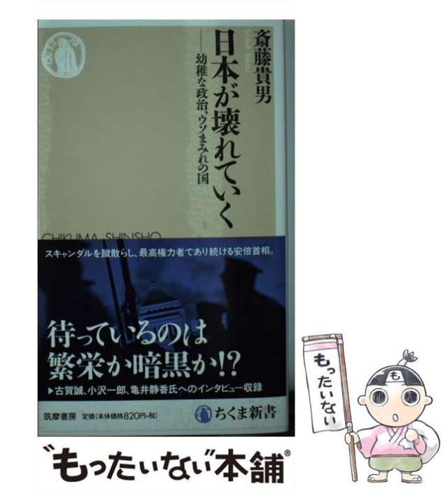 商品名:【中古】 日本が壊れていく 幼稚な政治、ウソまみれの国 (ちくま新書 1355) / 斎藤貴男 / 筑摩書房 [新書]【メール便送料無料】