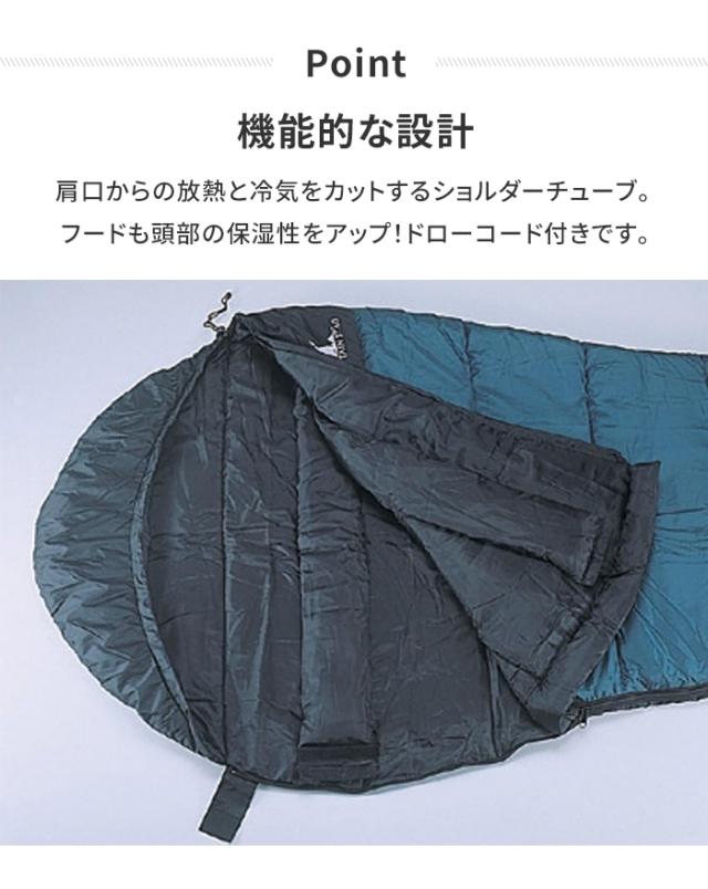 | 春から秋のキャンプ・ツーリングに最適!(適応温度:5-25℃で3シーズン対応) 肩口からの放熱と冷気をカットするショルダーチューブ付き。 ファスナー部からの放熱と冷気をカットするドラフトチューブを採用。 貴重品などを入れておくポケット付き。 軽くて強度があり、撥水性・通気性に優れていますリップストップポリエステル70D採用。 携帯に便利な収納バッグ付きです。 |