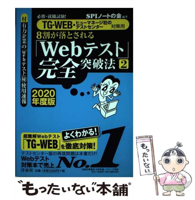 商品名:【中古】 8割が落とされる「Webテスト」完全突破法 必勝・就職試験! 2020年度版2 TG-WEB・ヒューマネージ社のテストセンター対策用 / SPI / [単行本(ソフトカバー)]【メール便送料無料】