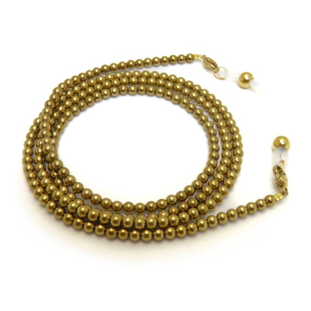 ヘマタイト ゴールドコーティング 3mm玉 メガネチェーン タイプ2 天然石 パワーストーン 置き忘れ防止 めがねホルダー 眼鏡コード マスクチェーン マスクストラップ メガネストラップ ネックレス 眼鏡チェーン グラスコード