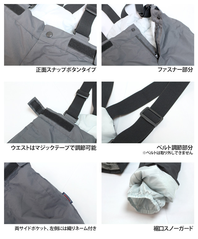 | 商品説明 | 対象:スキー スノーボード スノーウェア スノボウェア 防寒 冬 雪遊び タイプ:スキーパンツ サロペットパンツ 中綿パンツ サイズ展開:110cm 120cm 130cm 140cm 150cm 160cm BINZART(バンザート) オリジナル 中綿たっぷりの防寒スノーパンツ ●撥水加工素材使用 ●ポケット 左右2つ ●ウエスト調節マジックテープ付 ●スノーガード スキーはもちろん冬の防寒通学着にも最適です |