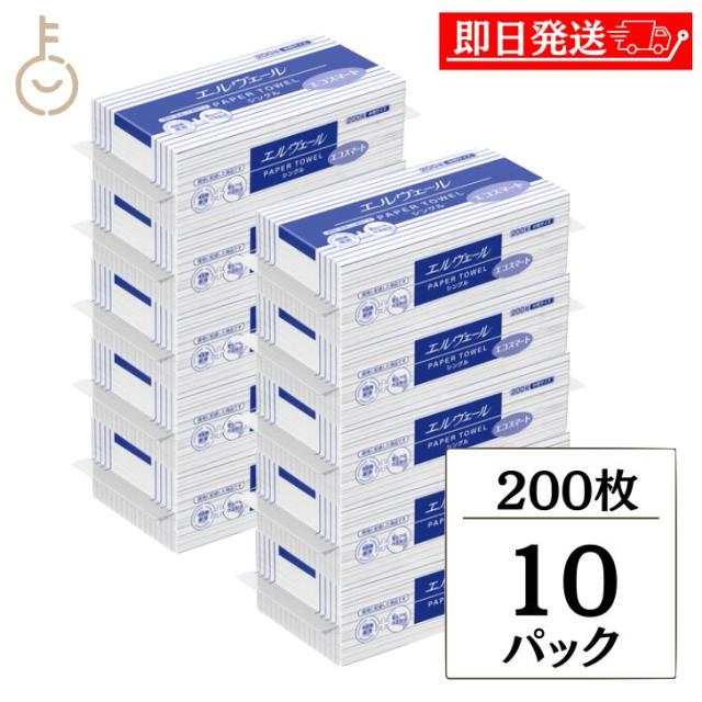 ペーパータオル 業務用 エルヴェール ペーパータオル エコスマート シングル 小判 703511(200枚×10袋) お手拭き 家庭用 一押しペーパータオル キッチンペーパー 使い捨て 手拭きタオル 厚手 パルプ まとめ買い 送料無料
