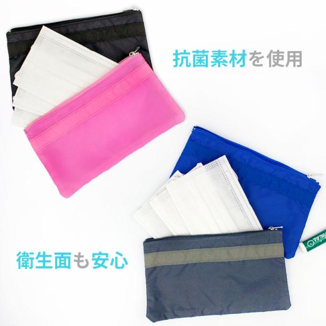 | 商品説明 | 日常生活の必須アイテムとなりつつあるマスクの抗菌ケースです! 抗菌加工が施されている素材を使用しているので、安心してお使い頂けます。 お出かけの時に、新しいマスクを入れたり鞄の中に散乱してしまうリップや目薬などの小物を収納するのに便利です。 内側には仕切りがあるので、未使用マスクと使用済みマスクを分けて収納することもできます。 お食事中などマスクを外す場面で活躍します。 チャックでしっかり開け閉めができるので、中身が落ちにくいので安心です。 他にも、メイク直し用の道具や傷テープ、常備薬など出先であると助かるアイテムの収納にもピッタリです。 |