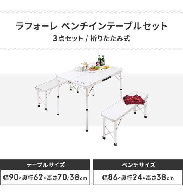 【値下げ】折りたたみ テーブル ベンチ 2脚 セット 4人用 オールインワン収納 テーブル幅90 奥行62 高さ70-38 椅子 机 コンパクト BBQ