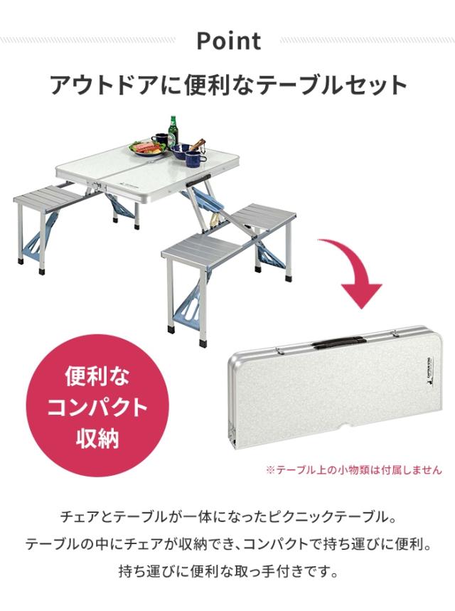 【値下げ】折りたたみ テーブル アウトドア チェア 一体型 幅137 奥行88 高さ66 ピクニックテーブル 収納 コンパクト アルミ ローテーブル
