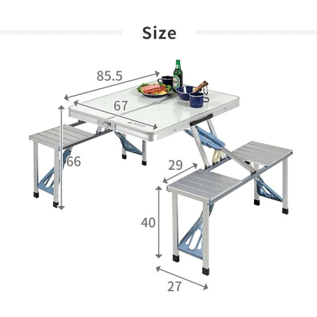 | ピクニックテーブル コンパクト テーブル チェア セット 幅137 奥行88 高さ66 アルミ ベンチ オールインワン収納 ホワイト シルバー レジャーテーブル アウトドアテーブル ローテーブル 簡易テーブル 折りたたみテーブル おしゃれ キャンプ アウトドア 焚き火 椅子 アウトドア用品 キャンプ用品 レジャー用品 釣り 海 川 フェス BBQ バーベキュー用品 携帯折りたたみ椅子 スポーツ観戦 運動会 グランピング用品 シンプル いす 家族4人用 バーベキュー ベランピング 持ち運び 行楽 旅行 花見 ソロキャンプ チェアリング 遊び イス チェアー 折り畳み |