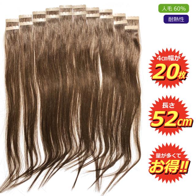 [ ダークブラウン 茶色 G-4 ] シール エクステ 人毛 ロング ヘアエクステ 長さ52cm 20枚セット 送料無料