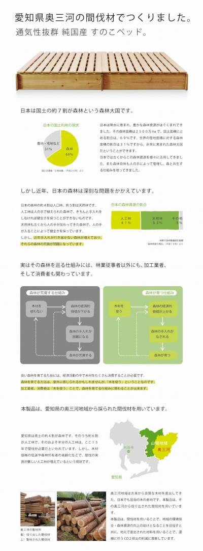天然木杉を使用したすのこベッド