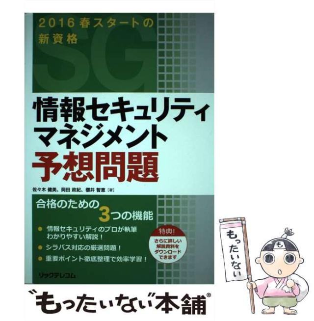 商品名:【中古】 情報セキュリティマネジメント予想問題 / 佐々木健美 岡田政紀 櫻井智恵 / リックテレコム [単行本(ソフトカバー)]【メール便送料無料】