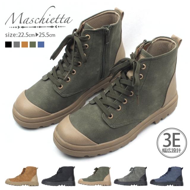 トレッキング カジュアルブーツ レースアップ 防水設計 レイン 雨 サイドファスナー サイドジップ 痛くない 歩きやすい カラーコンビがオシャレな定番デザインのレースアップカジュアルブーツ maschietta マスチェッタ 4741