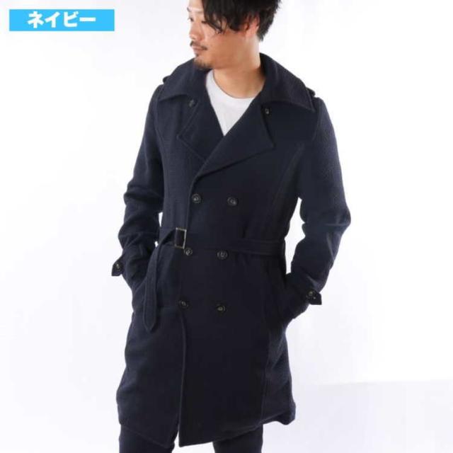 トレンチコート★メンズ ネイビー 無地 ワッフル アウター ロングコート オーバーコート 送料無料 ST33316-NV