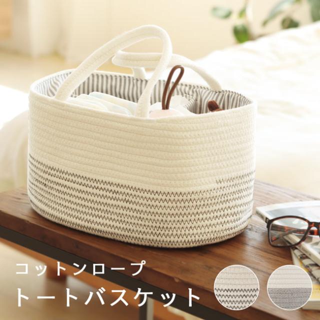 コットンロープ仕分けトートバスケット オムツストッカー おむつストッカー 赤ちゃんおむつバッグ ベビー用品 収納 大容量 おもちゃ収納 ストレージ 綿100% 小物入れ ナチュラル モノトーン 北欧 インテリア おしゃれ シンプル