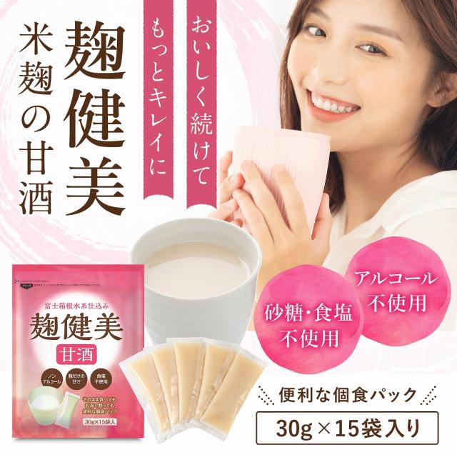 麹健美 甘酒 米麹 砂糖不使用 ノンアルコール 30g×15袋 パック あまざけ 米糀のみ 麹甘酒 国産 【メール便 送料無料】