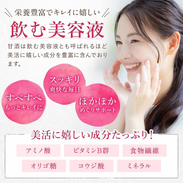 甘酒は飲む美容液とも呼ばれるほど 美活に嬉しい成分を豊富に含んでおります。