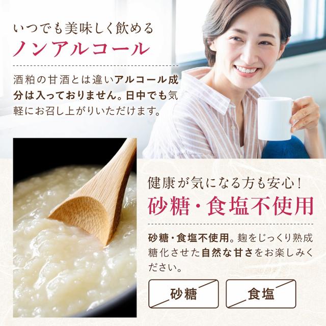 砂糖、食塩不使用。麹をじっくり熟成糖化させた自然な甘さをお楽しみください。
