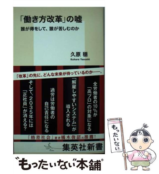商品名:【中古】 「働き方改革」の嘘 誰が得をして、誰が苦しむのか (集英社新書) / 久原 穏 / 集英社 [新書]【メール便送料無料】