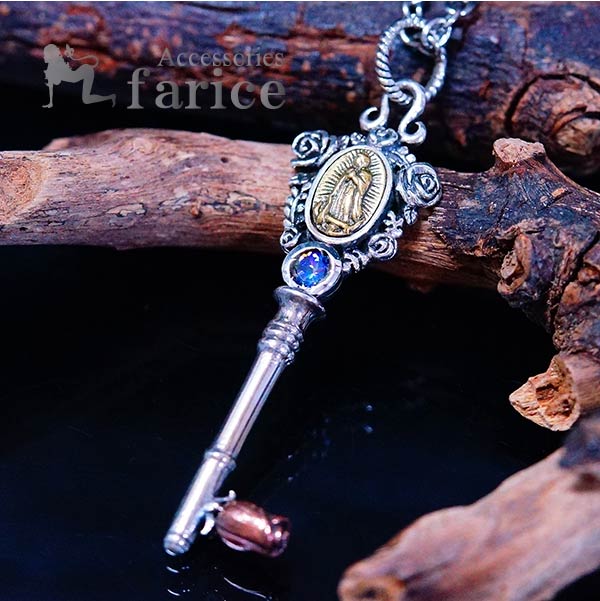 マリア グアダルーペの聖母 鍵 キー ミスティックトパーズ 薔薇 ローズ ゴールド シルバー925 ペンダント ネックレス