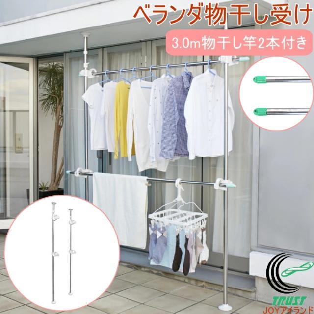 ベランダ物干し受け 3m物干し竿2本付き 室外物干し 室外 物干し 物干し棒 ポール つっぱり棒 突張り 突っ張り つっぱり ツッパリ 竿受け 物干し竿 竿 洗濯 ランドリー ふとん