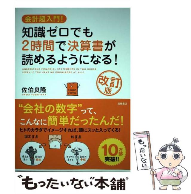 商品名:【中古】 知識ゼロでも2時間で決算書が読めるようになる! 会計超入門! 改訂版 / 佐伯良隆 / 高橋書店 [単行本(ソフトカバー)]【メール便送料無料】