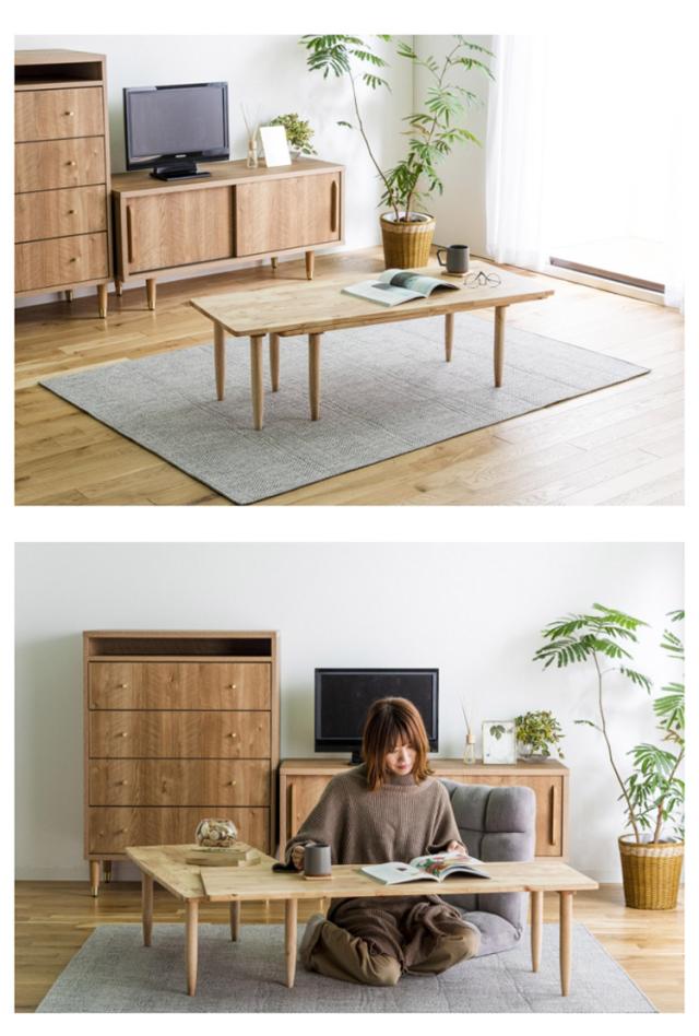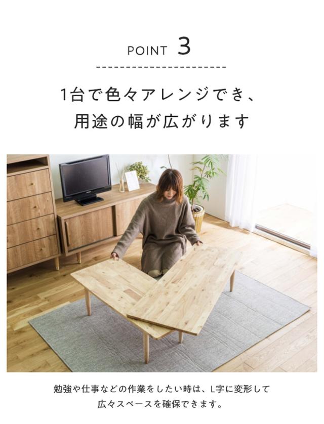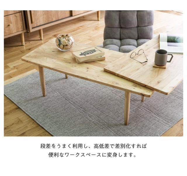 テーブル L字型 センターテーブル 伸縮 回転式 ロータイプ L字デスク L字ローデスク 天然木 北欧 木製 おしゃれ かわいい コーヒーテーブル(代引不可)【送料無料】