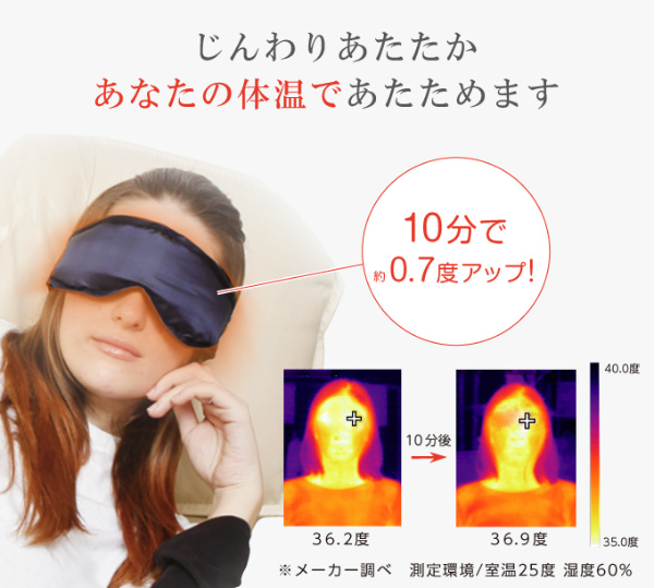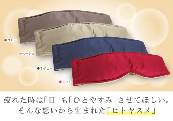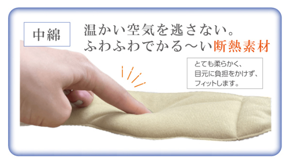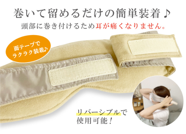 目元を温めてリラックス。これから寒くなる時期にぴったりなアイマスクです。ユニチカトレーディングの蓄熱保温素材「サーモトロン」をはじめとする、高機能素材を複数使用し「自分の体温」でじんわりあたためます。面テープで装着するタイプだから耳への負担がありません。カラーは4色ご用意。各色ともリバーシブルで使えます。(裏面は共通仕様)