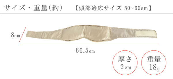 ■品番:5290■カラー:ネイビー、レッド、ベージュ、グレー■商品サイズ(約):66.5×8×2cm■個装サイズ(約):30×11×2.5cm■商品重量(約):18g■材質:ポリエステル100%■頭部適応サイズ(約):50〜60cm■洗濯:可能■生産国:日本