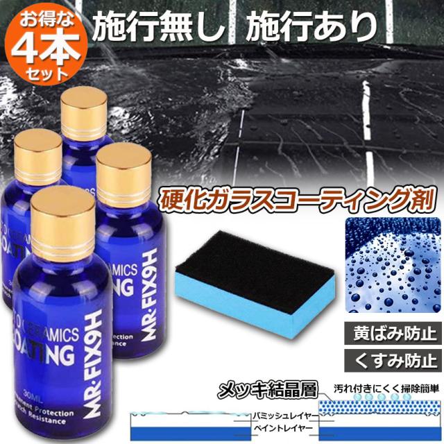 ガラスコーティング剤 ガラスコーティング 4本セット 液体セラミックコート 車コーティング剤 ガラスコーティング ガラス硬化剤 洗車 クリーナーポリッシュ カーシャンプー ポリッシュ 洗浄剤 黄ばみ くすみ 防止 対策 自動車