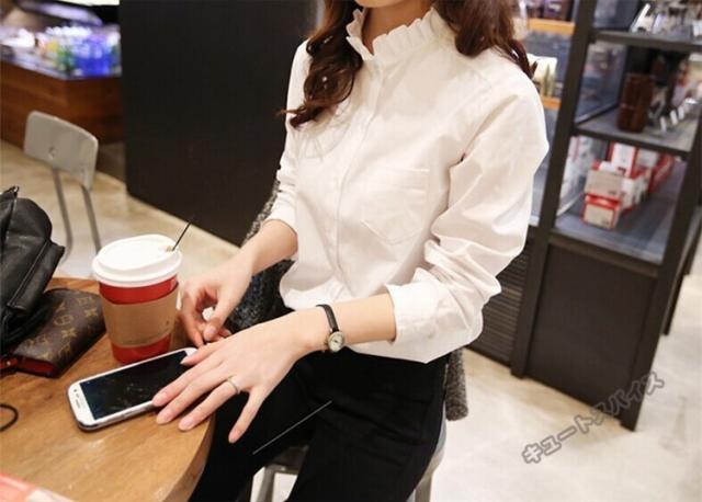 ブラウス トップス レディース シャツ 白 着痩せ フリルシャツ コーデ 韓国風 着痩せ おしゃれ 2019 オフィス 通勤 OL オシャレ 3色
