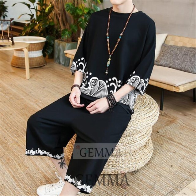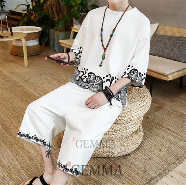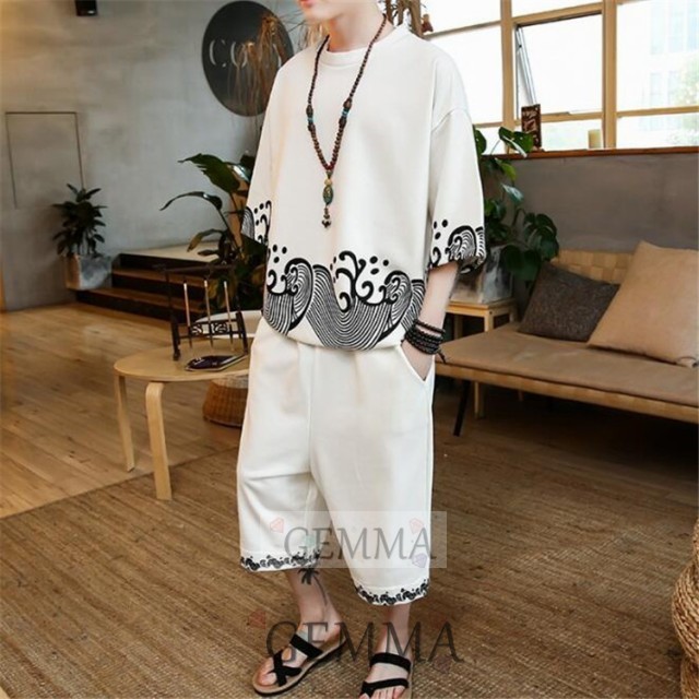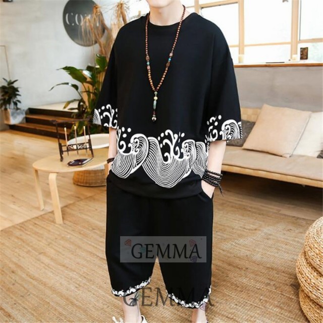 上下セット 半袖 大きいサ Tシャツ 部屋着 セットアップメンズ ジャージ ゆったり 花柄 サルエルパンツ 薄手 涼しい