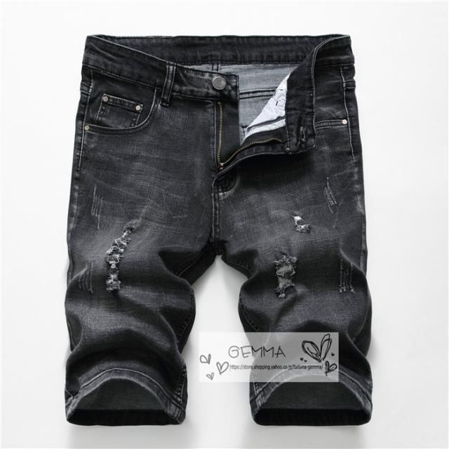ハーフパンツ デニム パンツ 半ズボン ダメージ加工 メンズ ショートパンツ デニム ジーンズ スリム ショーツ ハーパン ストレッチ 短パン