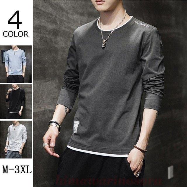 Tシャツ メンズ 長袖 ロンT 長袖Tシャツ 肩の刺繍 カジュアルTシャツ クールネック インナー 春物 春服 父の日