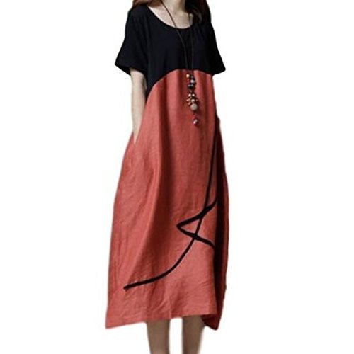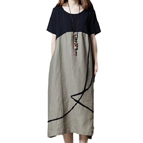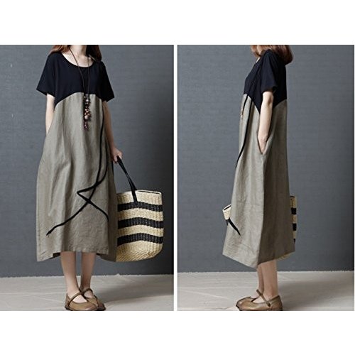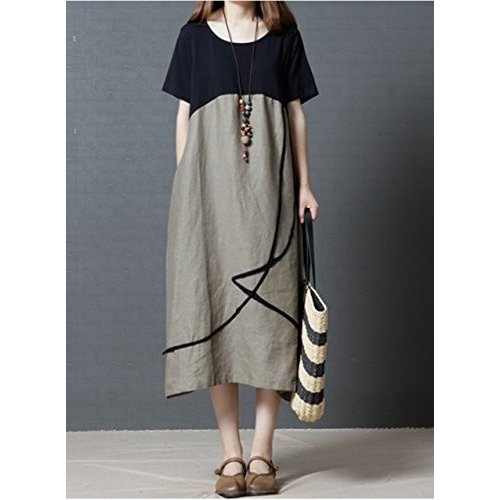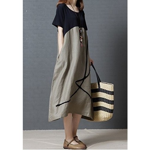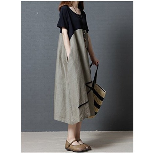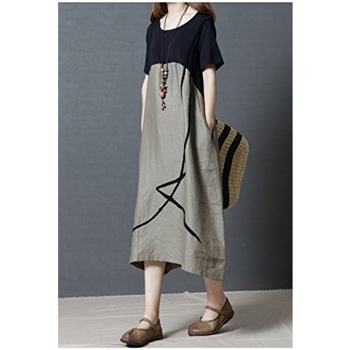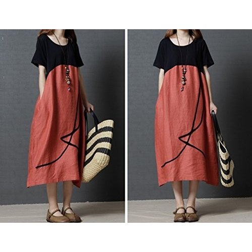 ワンピース aライン トップス ウエスト 切り替え(グレー・オレンジ)