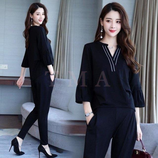 セットアップ レディース 春秋新作 Vネック プルオーバー テーパードパンツセットアップ オシャレ2点セット 大きいサイズ カジュアル 通勤 ゆったり 母 着痩せ