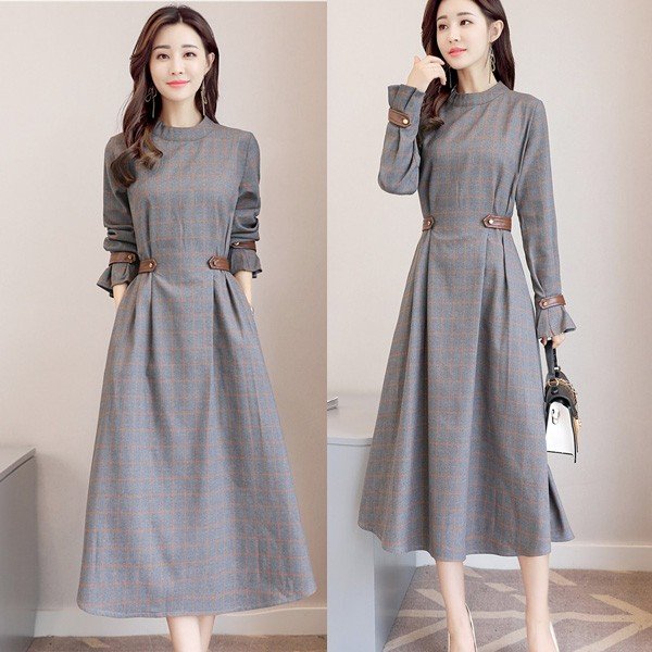 ワンピースドレス ロング丈ワンピース グレンチェック レディース フレアAライン ロングワンピース 結婚式 ワンピース 40代 パーティー 入園式 卒業会 入学式