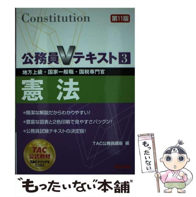 商品名:【中古】 憲法 地方上級・国家一般職・国税専門官 [2018]第11版 (公務員Vテキスト 3) / TAC株式会社(公務員講座) / TAC株式会社出版事業部 [単行本(ソフトカバー)]【メール便送料無料】