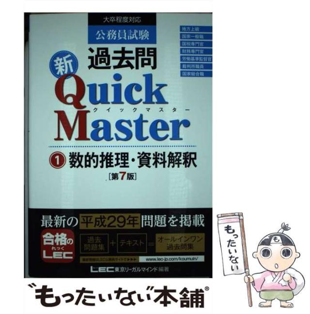 【中古】 公務員試験過去問新Quick Master 1 数的推理・資料解釈 第7版 / 東京リーガルマインドLEC総合研究所公務員試験部 / 東京リーガルマインド [単行本]【メール便送料無料】