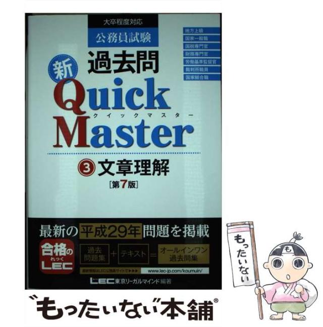 【中古】 公務員試験過去問新Quick Master 3 文章理解 第7版 / 東京リーガルマインドLEC総合研究所公務員試験部 / 東京リーガルマインド [単行本]【メール便送料無料】