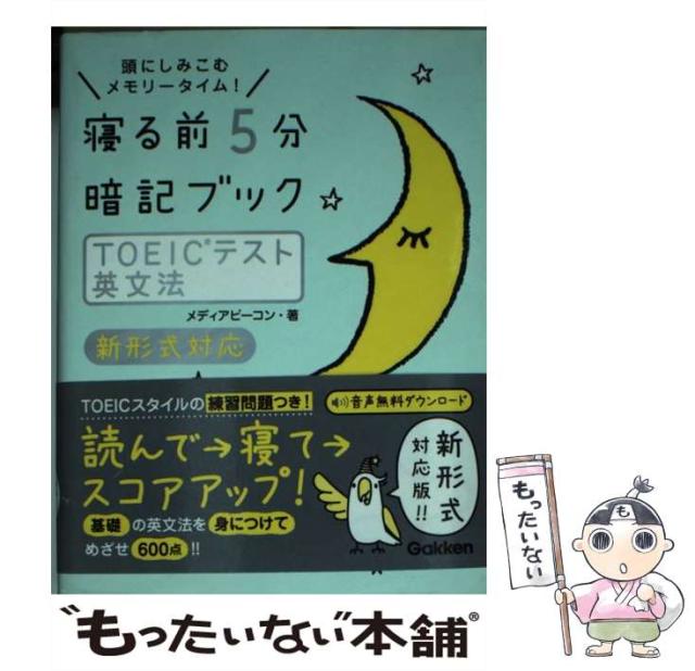 商品名:【中古】 寝る前5分暗記ブックTOEICテスト英文法 頭にしみこむメモリータイム! / メディアビーコン / 学研プラス [ペーパーバック]【メール便送料無料】