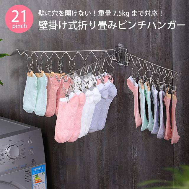 壁掛け式 ピンチハンガー 折りたたみ 洗濯ハンガー 21ピンチ 洗濯バサミ 洗濯 ハンガー 下着 靴下 物干しハンガー 新生活 wall-p-hg