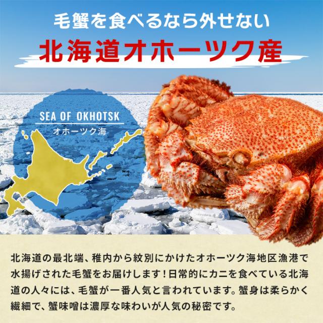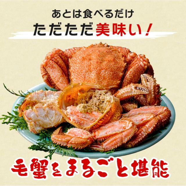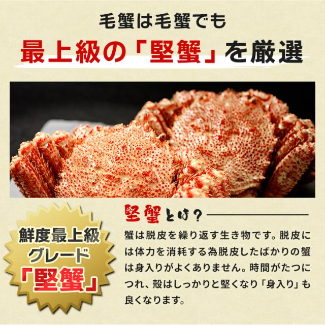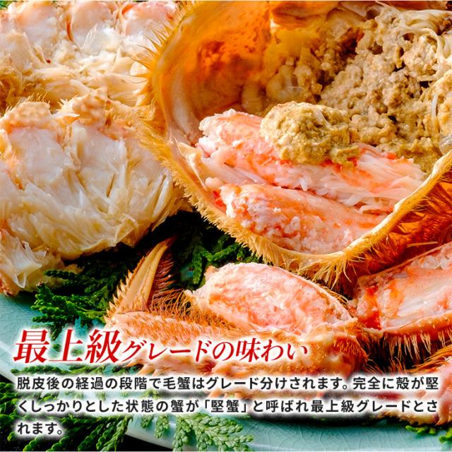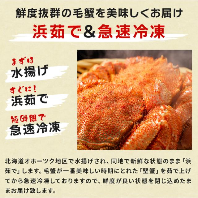 北海道オホーツク産 浜茹で毛蟹 大型570gサイズ×2尾入 合計1,14kg 化粧箱入り 堅蟹 カタガニ かたがに ケガニ 毛ガニ かに カニ お祝い お歳暮 お年賀 プレゼント お歳暮