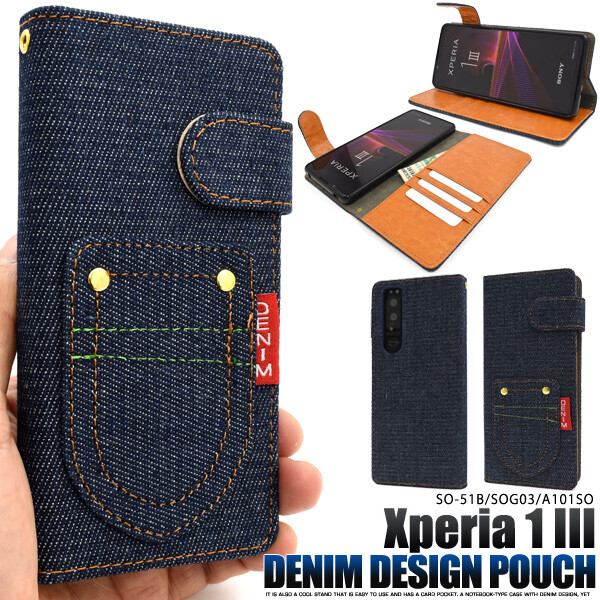 xperia 1 iii ケース 手帳型 カバー デニム デニムケース xperia1iii so-51b sog03 a101so 手帳型ケース 可愛い かわいい おしゃれ 手帳ケース エクスペリア 1iii エクスペリア ワン マークスリー スマホケース スマホカバー 携帯ケース 携帯カバー ブルー ネイビー