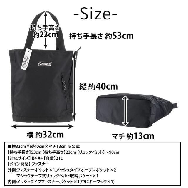 【最大200円OFF】モールクーポン対象! コールマン バッグ 2WAYリュックサック トートバッグ バックパック デイパック Coleman ウォーカー 2WAYバックパックトート 21L B4 A4 B5 ポイント10倍 送料無料 プレゼント ギフト ラッピング無料 【正規代理店】
